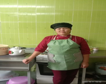 Тулеова Раиса Каспаевна Лауазымы: аспазшы Туған жылы: 14.03.1972 Білімі: арнаулы орта Еңбек өтілі: 10.5жыл |
