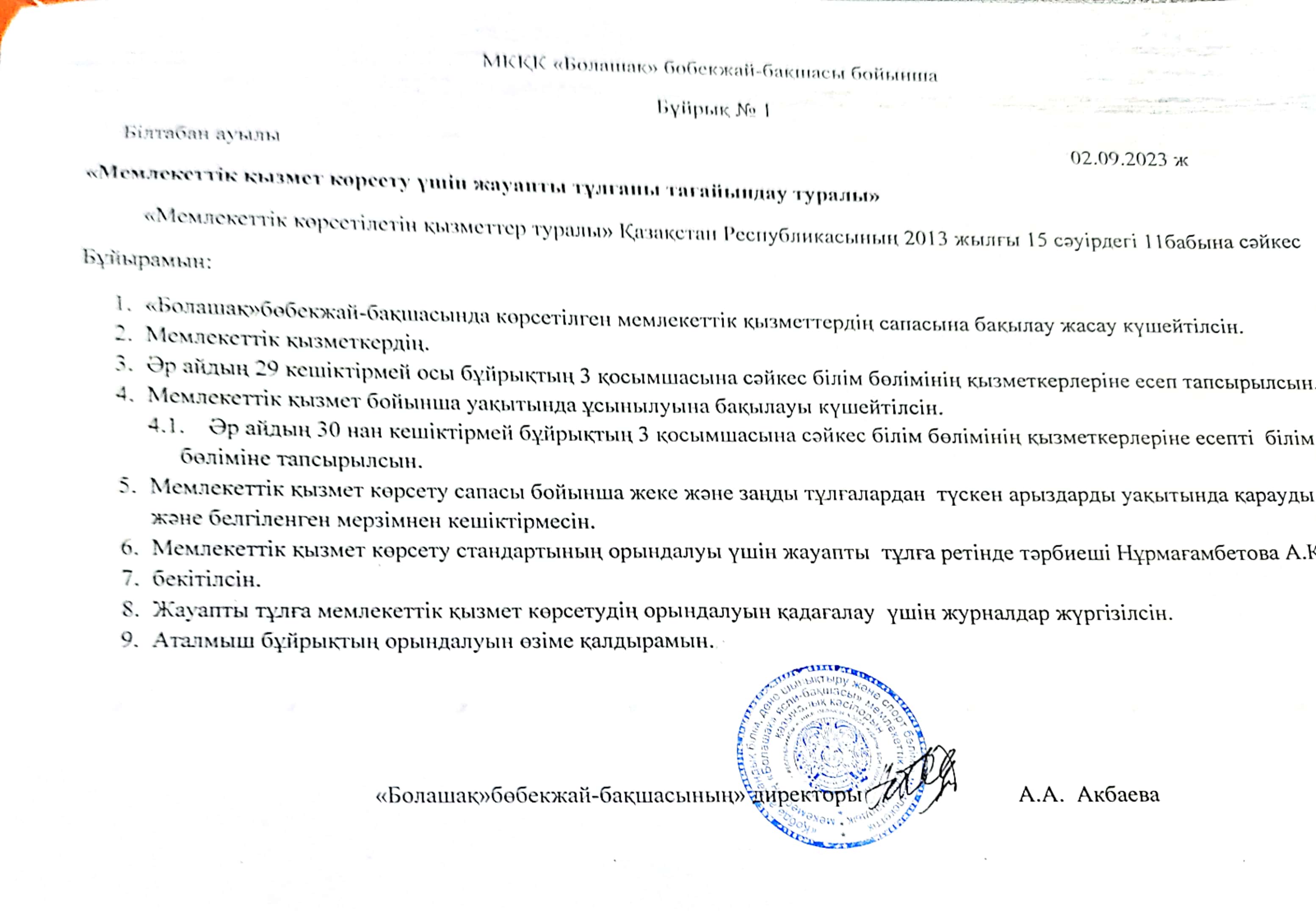 1) мектепке дейінгі ұйымға қабылдауға арналған жолдама (берілген күннен бастап бес жұмыс күні ішінде жарамды);